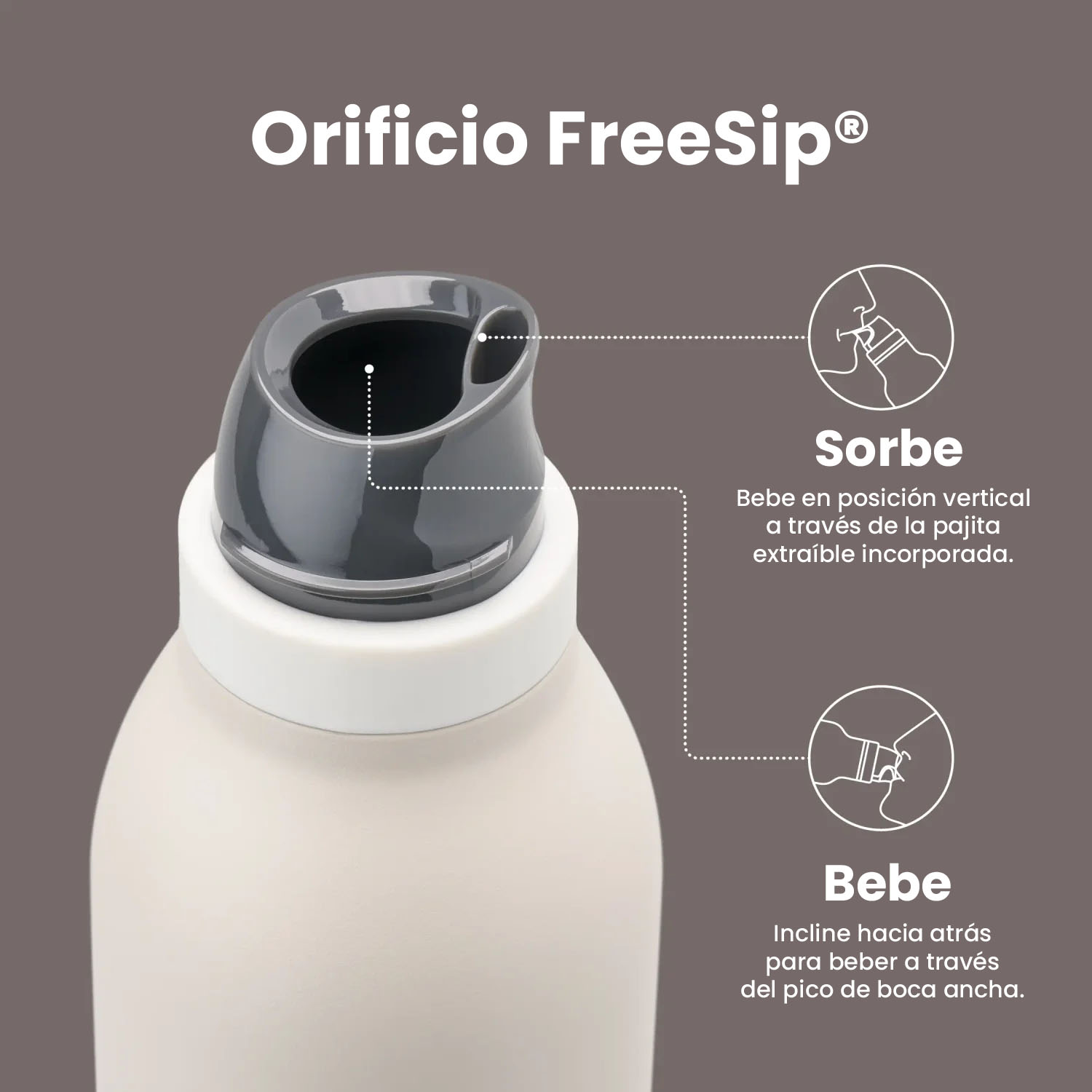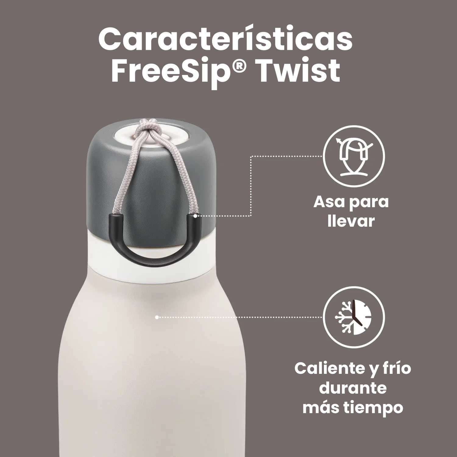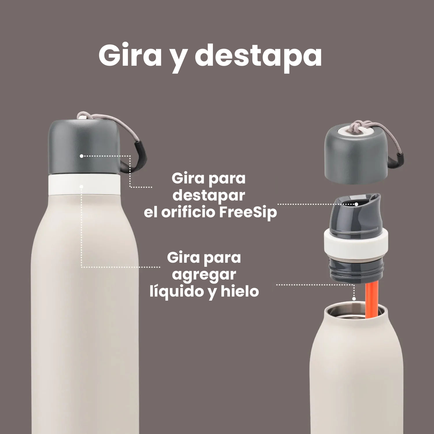 Mantente hidratado con la botella de agua térmica de acero inoxidable Owala FreeSip Twist. Diseñada para beber de dos maneras diferentes: puedes beber con la pajita o a sorbos del pico para calmar la sed.